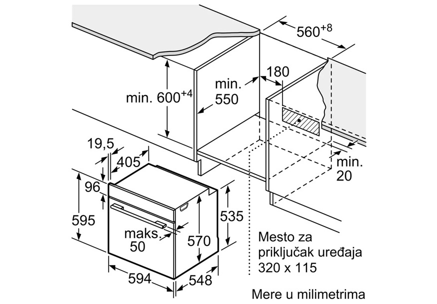 Dimenzije (VxŠxD): 595 mm x 594 mm x 548 mm