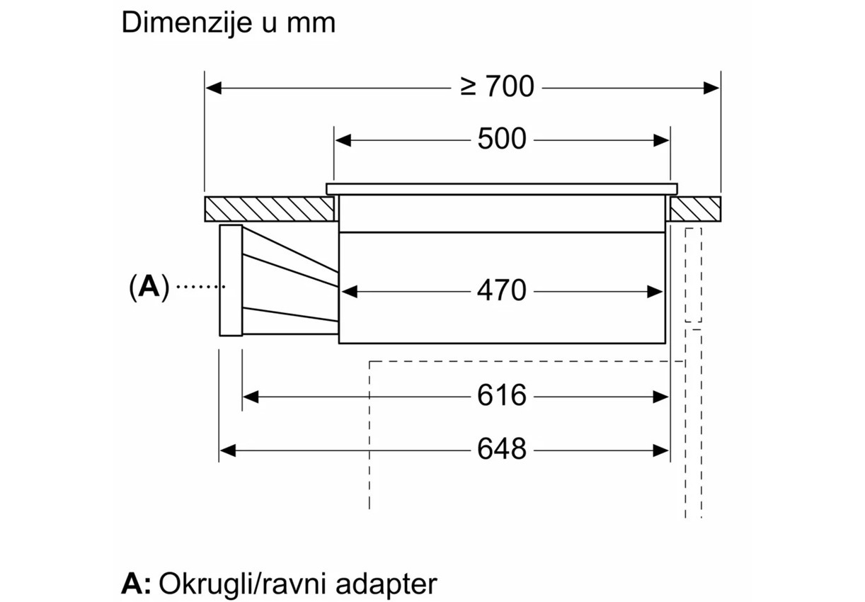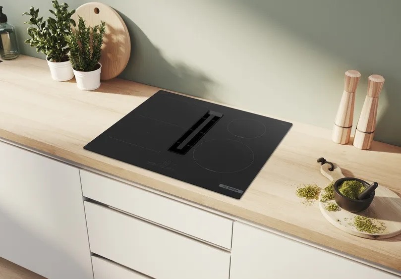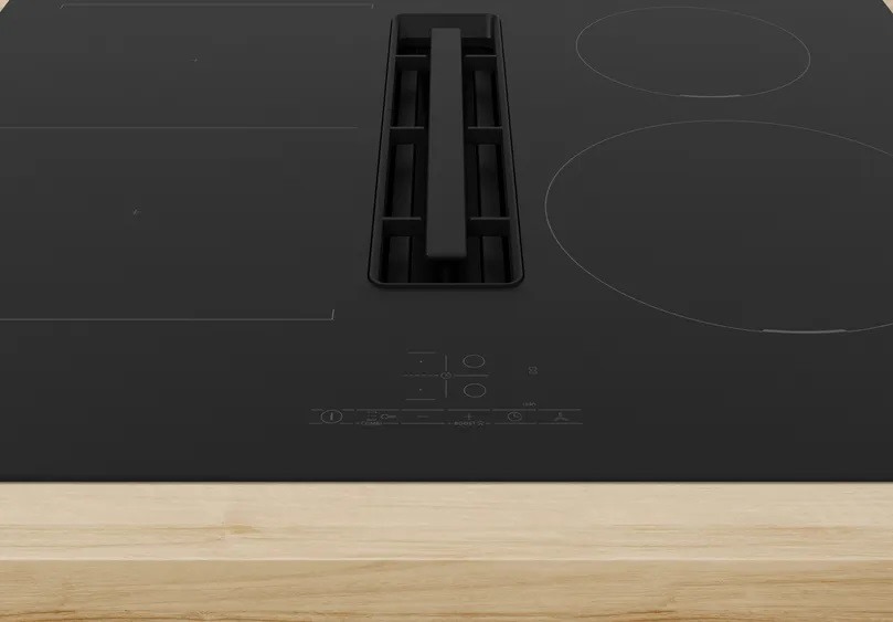 – Indukciona ploča za kuvanje sa potpuno ugradnim „downdraft” ekstraktorom visokih performansi