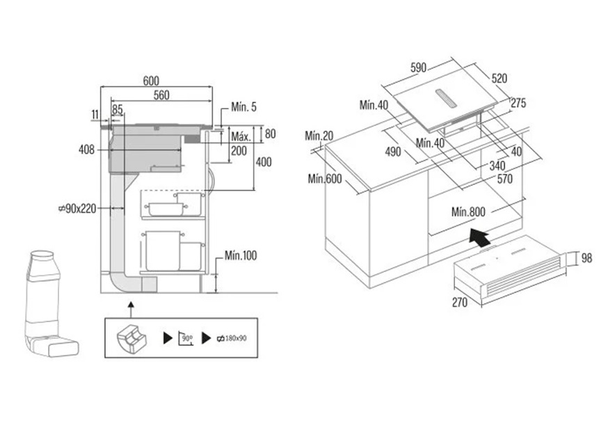Model: AS 600 INDUKCIONA PLOČA SA INTEGRISANIM ASPIRATOROM
