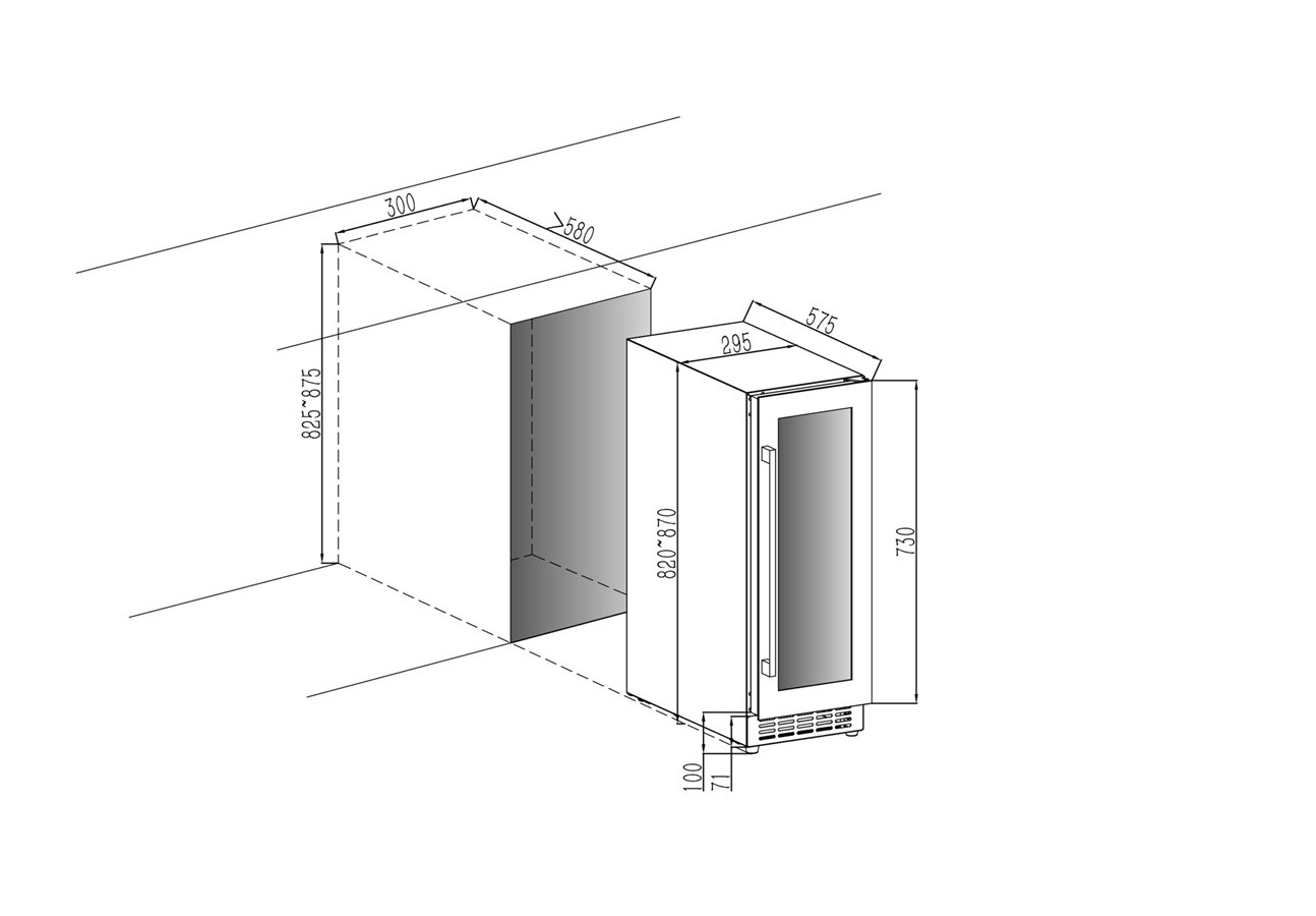 Ugradna vitrina za vino sa modernim, skandinavskim dizajnom, mat crnom završnom obradom i četiri drvene police na izvlačenje. Vitrina za vino se može podesiti po visini kako bi se savršeno uklopila u vašu kuhinju, a svojim uskim dizajnom možete je uklopiti u mnoge prostore! Ima dve podesive temperaturne zone za optimalno skladištenje belih i crnih vina. Frižider ima 18 flaša i ima digitalni displej i staklena vrata sa UV zaštitom (Low-E) koja štiti vaše vino od štetne svetlosti.