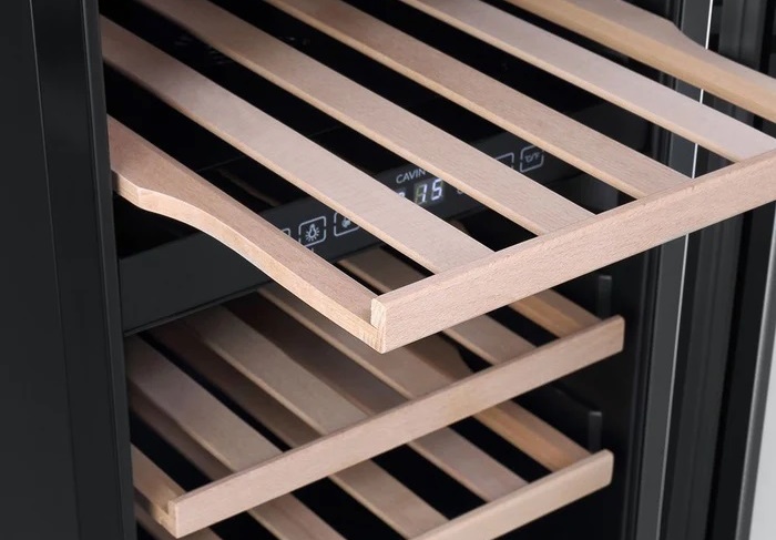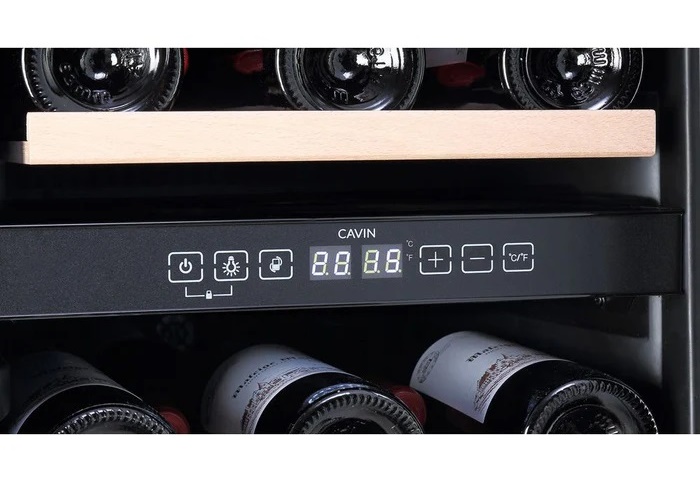 Vitrina za vino evropskog brenda CAVIN. Vitrina ima crnu ručku, staklena vrata sa UV zaštitom i ekskluzivne drvene police. Arctic Collection 30 ima dve podesive temperaturne zone, drži 18 boca i ima G energetsku oznaku.