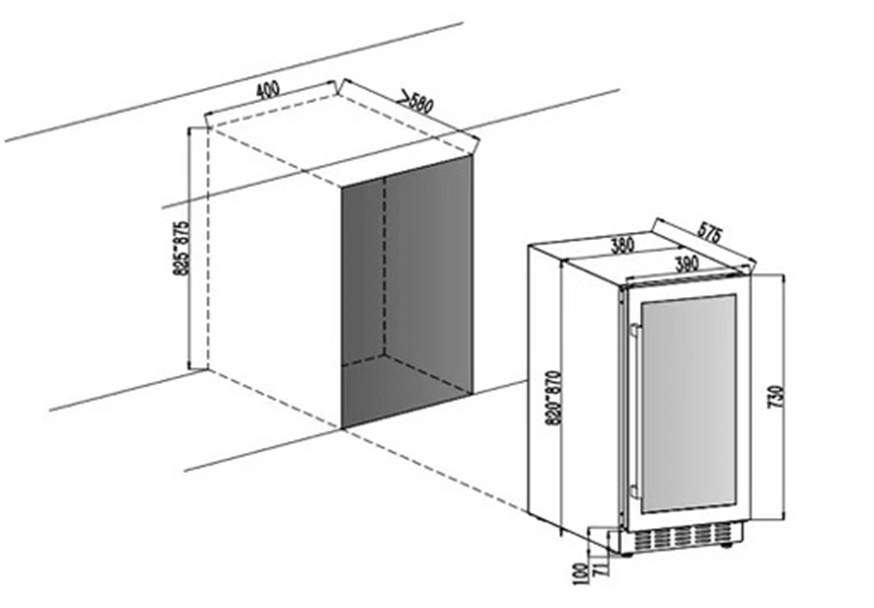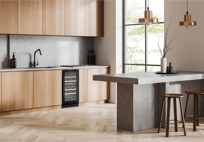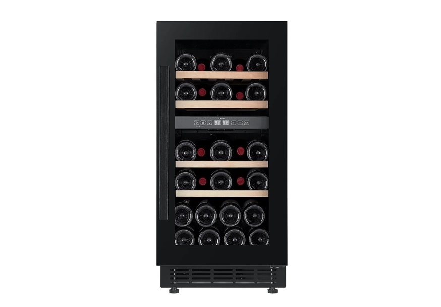 Ugradna vitrina za vino sa modernim, skandinavskim dizajnom, mat crnom završnom obradom i četiri drvene police na izvlačenje. Vitrina za vino se može podesiti po visini kako bi se savršeno uklopila u vašu kuhinju, a svojim uskim dizajnom možete je uklopiti u mnoge prostore! Ima dve podesive temperaturne zone za optimalno skladištenje belih i crnih vina. Frižider ima 18 flaša i ima digitalni displej i staklena vrata sa UV zaštitom (Low-E) koja štiti vaše vino od štetne svetlosti.