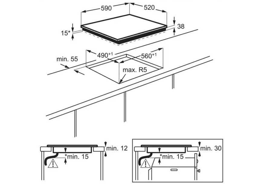 Ugradne dimenzije VxŠxD (mm): 38 x 560 x 490