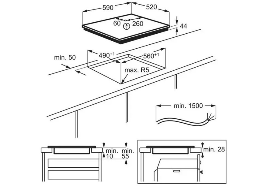 Ugradne dimenzije u cm: 4,5 on top; Izrez: x 49 D x 56 Š