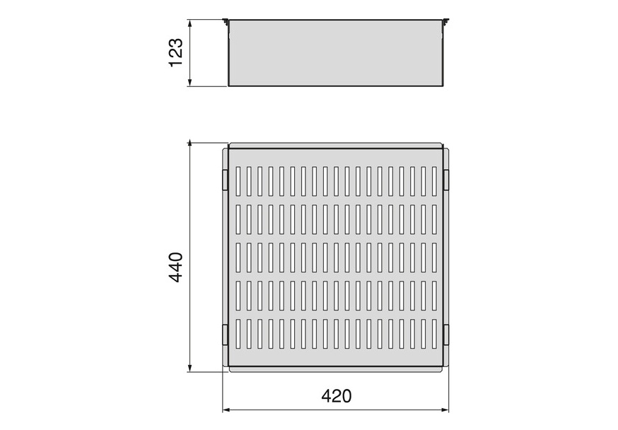 – širine 600 mm, dimenzija 440 mm širine, 420 mm dubine i 123 mm visine