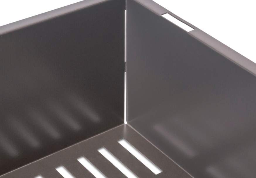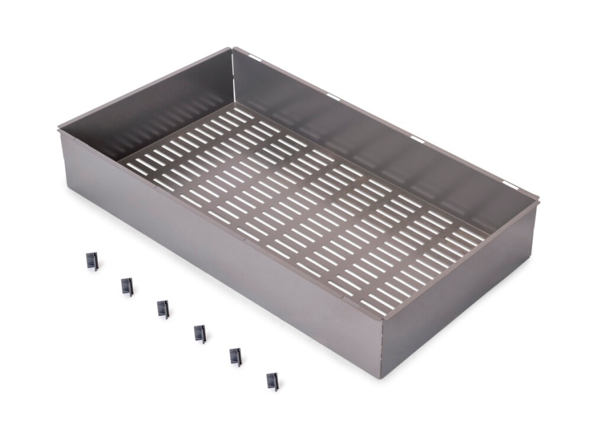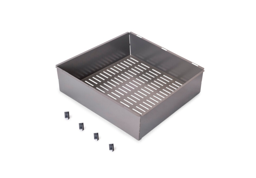 Metalna fioka za ormare i garderobere, namenjena za uredno odlaganje odeće, sa konstrukcijom otpornom na udarce i padove. Modularni sistem kompatibilan sa Quartz izvlačnim okvirom, koji olakšava integraciju sa ostalim dodacima u okviru sistema. Jednostavna i bezbedna montaža, zahvaljujući priloženim plastičnim nosačima koji omogućavaju pričvršćivanje za okvir bez potrebe za dodatnim alatom.