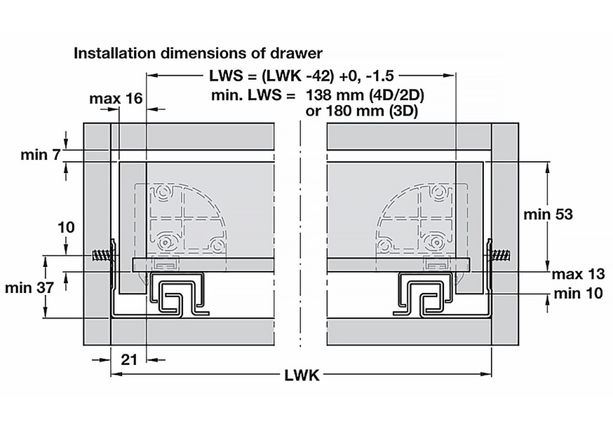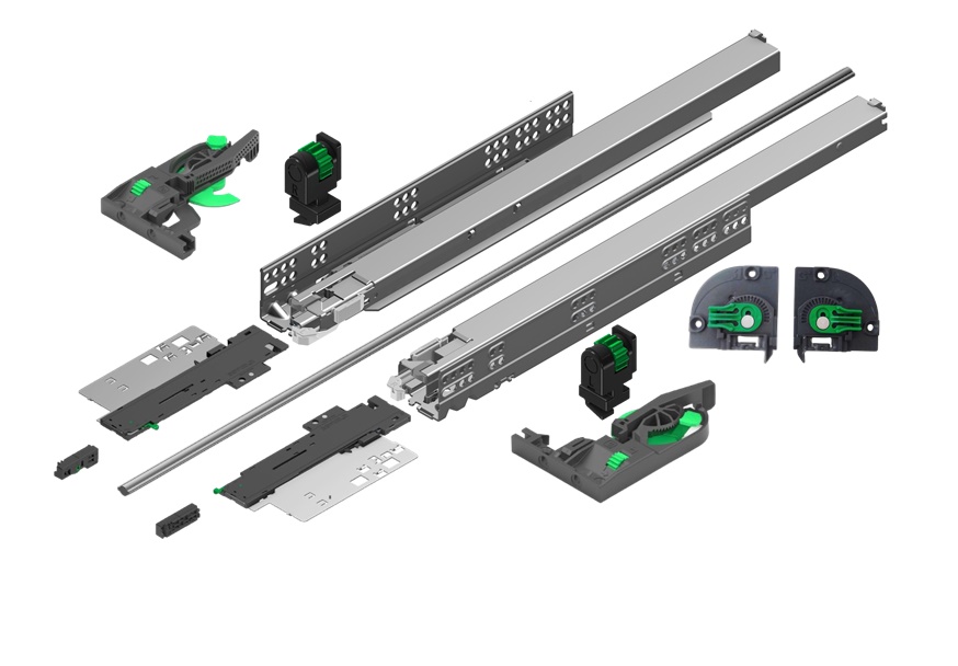 – 4D (spojnica fronta 2D L+R sa dodatkom za podešavanje po dubini i prihvatnikom zadnjeg dela fioke koji je podešavajući)