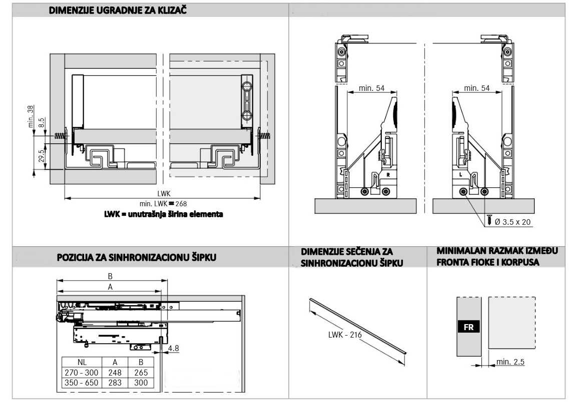 – 2D (spojnica fronta 1D L+R sa prihvatnikom zadnjeg dela fioke koji je podešavajući)
