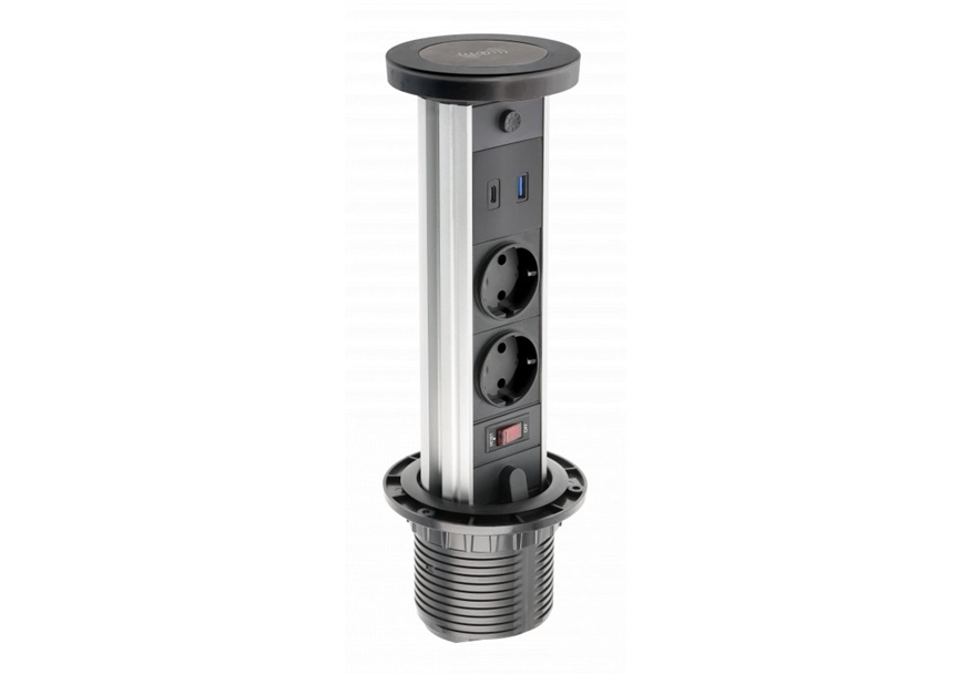 Poseduje: bežični punjač 10w, 1 x USB A+C, LED svetlo