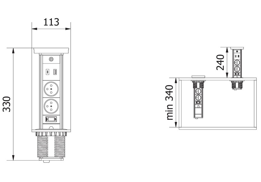 Dimenzija utičnice: Ø113 x 330 mm