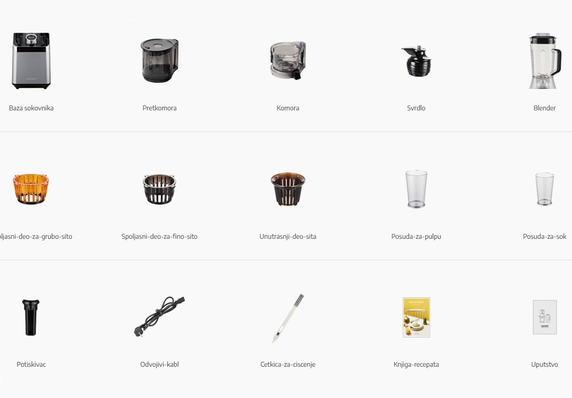 Napon: 220-240V, 200W (sokovnik) i 1000W (blender