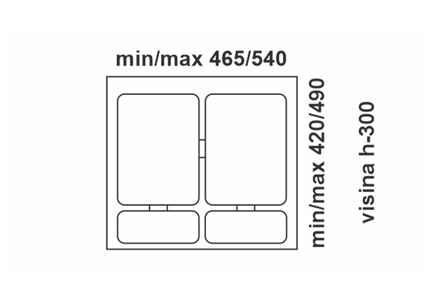 Plastični nosač u koji se postavljaju kante se lako seče tako da je prilagodljiv različitim modelima fioka