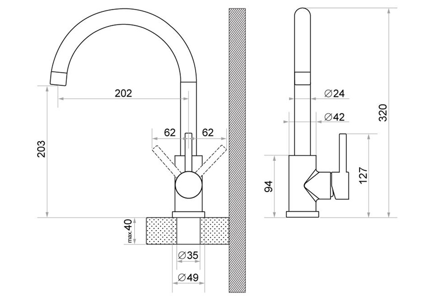Za slavinu je potrebno izbušiti otvor fi-35 mm