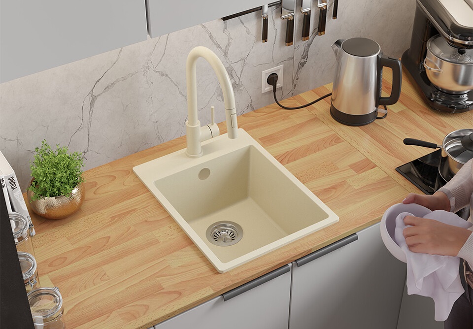 Sudopera se isporučuje sa već napravljenim otvorom za slavinu na sredini sudopere