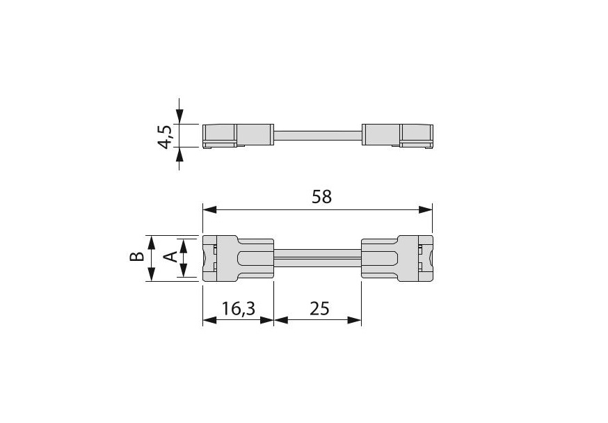 Fleksibilni konektor LYNX Q je napravljen od plastike na krajevima, a u sredini je kabal.