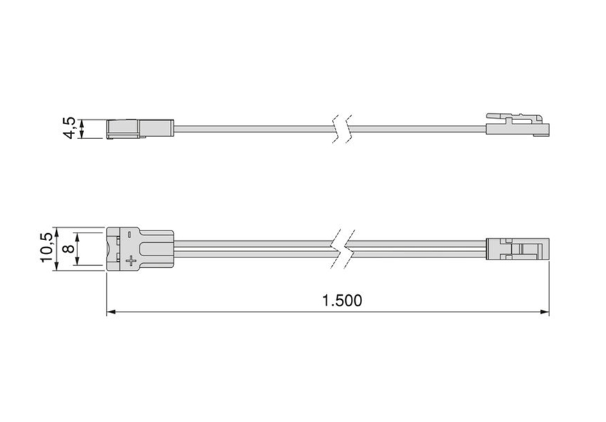 Na krajevima kabla poseduje konektore za povezivanje LED trake sa jedne i transformatore proizvođača Emuca sa druge strane