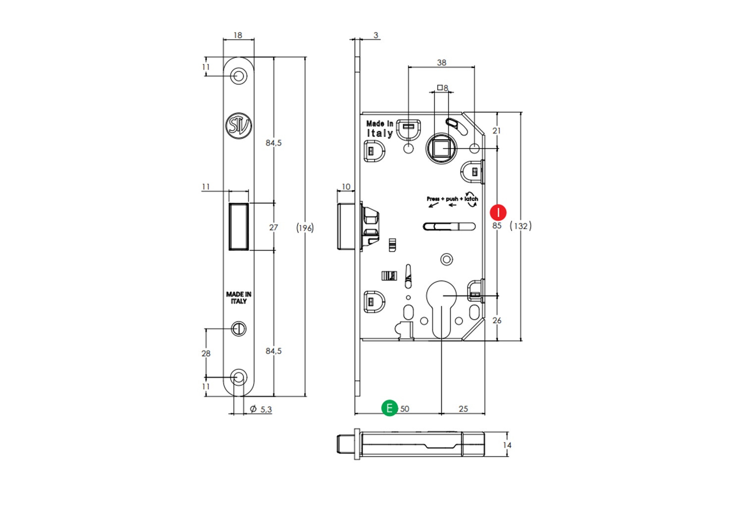 Rastojanje (E): 50 mm