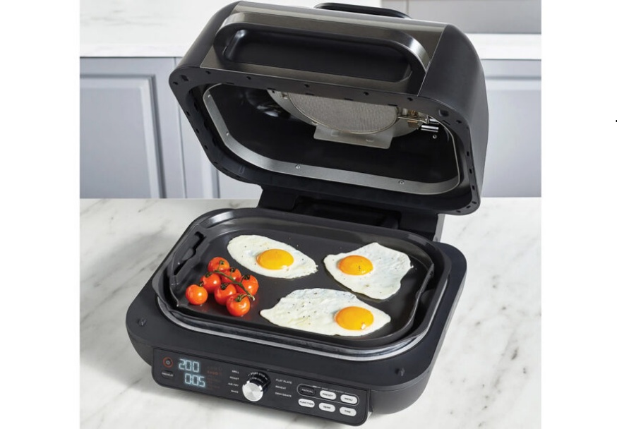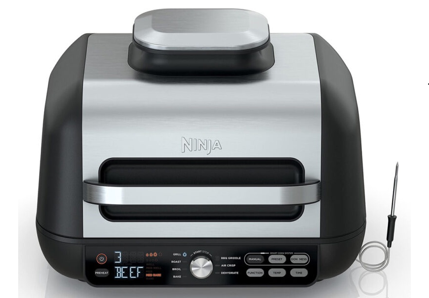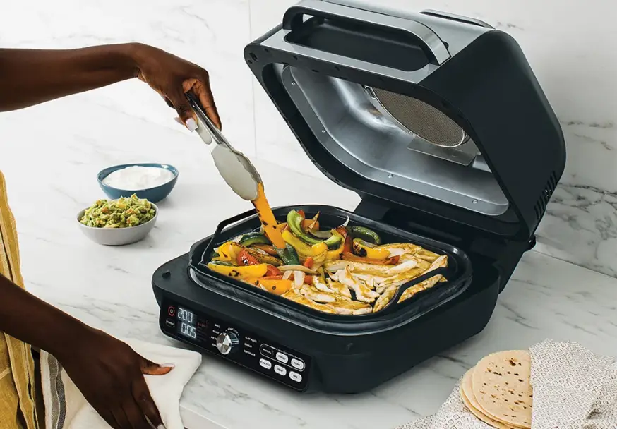 - Dimenzije (ŠxVxD): 36 x 25 x 42 cmUz Ninja Foodi Grill & Air Fryer može se brzo i lako primemiti omiljena hranaTehnologijom Cyclonic Air i temperaturama do 265°C omogućeno je pečenje kao na roštiljuPloča za roštilj koristi malo ili nimalo ulja, a njena temperatura je precizno kontrolisana kako bi se postigli savršeni, hrskavi i autentični ukusi na roštilju – pogodni za upotrebu u zatvorenom prostoru.