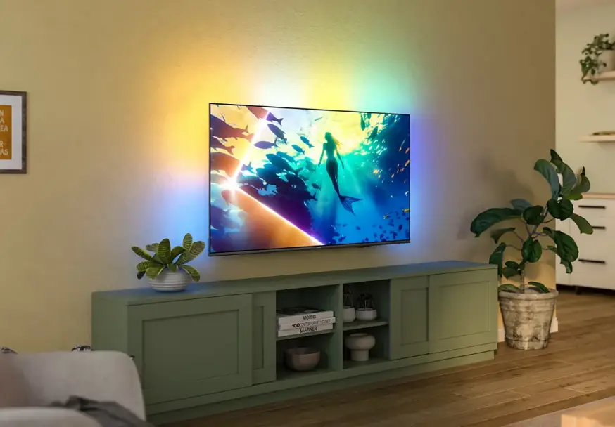 Funkcije Animacija FTI Ambilight, Ambilight Music, AmbiSleep, Način za igre, Način osvetljenja za salonsko raspoloženje, Budilnik sa simulacijom izlaska sunca, Prilagođavanje boji zida