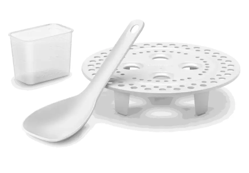 – Delovi mogu da se peru u maš. za sudove: Plastična posuda za kuvanje na pari, šolja za merenje, lopatica