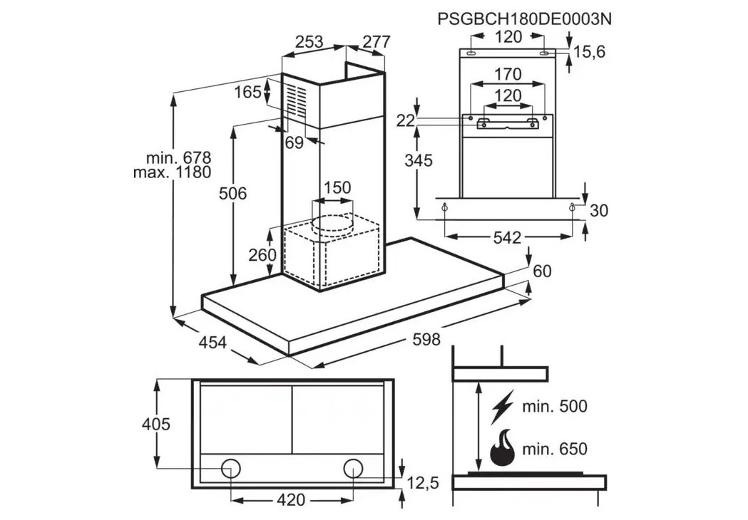 Minimalna udaljenost od ploče za kuhanje ELECTRIC: 50 cm