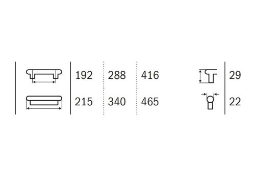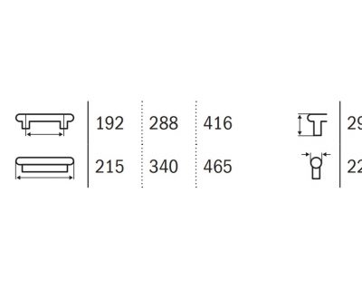 Raspon između rupa na kojima se kače ručice: 192, 288 i 416mm (pri kupovini odabrati odgovarajuću dimenziju)