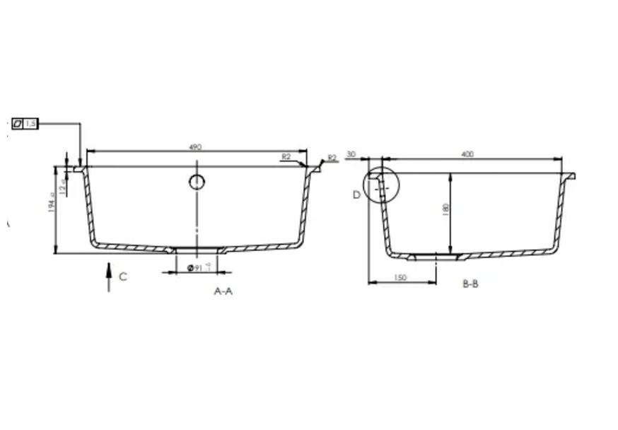 Dubina korita: 194 mm (unutrašnja 180mm)