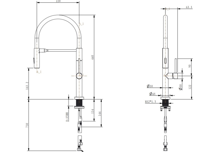 Za slavinu je potrebno izbušiti otvor fi-35 mm