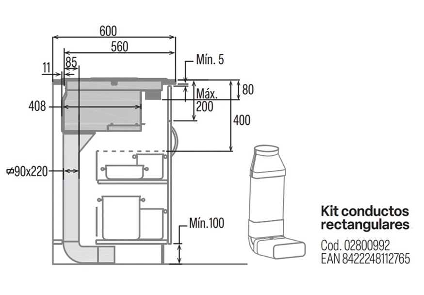 Set kanalica je namenjen za recirkulaciju vazduha za ploče sa integrisanim aspiratorom proizvođača Cata